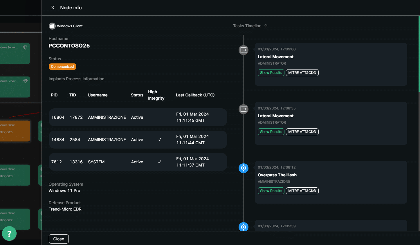 Grazie alla piattaforma ZAIUX Evo, è possibile emulare uno scenario di attacco in cui un attore malevolo abbia ottenuto un primo accesso ad una infrastruttura MS Active Directory, ad esempio tramite una campagna di phishing. Il software è quindi in grado di sfruttare vettori d’attacco avanzati per cercare di muoversi all’interno della rete e aumentare i propri privilegi, eseguendo al contempo tecniche che simulano l’esfiltrazione di informazioni e il deploy controllato di un Ransomware; il tutto attraverso un malware comandato da un server di Command and Control esterno, come in un vero attacco. Ciò consente di valutare la reale capacità delle soluzioni e dei team di difesa nel rilevare e bloccare le minacce, andando a verificare l’adeguatezza delle misure di gestione della Cybersecurity.